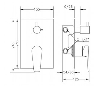 - Hauptkörper – Edelstahl AISI 304, 2,5 mm dick. Mattschwarze Pulverbeschichtung (RAL 9004), 115 µm Dicke. Befestigung an der Wandplatte mit einer Inbus-Edelstahlschraube.