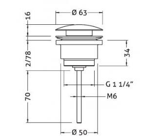 1) Aus Messing nach EN 12165 2) Verchromt nach EN 248. 3) Universalventil mit / out Überlauf. 4) Standardanschluss G 1 ¼“. 5) Abnehmbare Kappe.