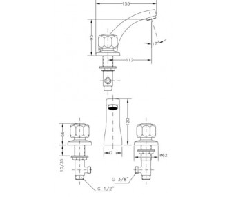 1) Körper, schwenkbarer Auslauf und Abdeckungen aus Messing gemäß UNE-EN 1982. 2) Verchromt nach EN 248. 3) Keramikkopf G1/2". 4) Antikalk-Kunststoffbelüfter M22x1 5) Ausgestattet mit exzentrischen Befestigungsmuttern aus Messing. 6) Höchsttemperatur: 85 °C. 7) max. empfohlene Temperatur: 65 °C. 8) Höchstdruck: 10 bar. 9) Mindestdruck: 0,5 bar. 10) Empfohlener Druck: 1 - 3 bar