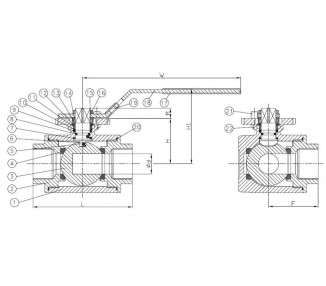 1. 3-Wege-Kugelhahn mit reduziertem Anschluss. 2. „L“-Kugelkonfiguration. 3. Gewindeenden nach ISO 7-1 (EN 10226-1). 4. Hergestellt aus Edelstahl 1.4408 (CF8M). 5. Vier Kugelsitze PTFE + 15 % G.F. 6. Schaftdichtung PTFE. 7. Schaft-O-Ring aus FKM (Viton). 8. Antistatisches Gerät (Kugel – Schaft – Körper). 9. Schließsystem. 10. Direktanbau-Antrieb gemäß ISO 5211. 11. Ausblassicherer Schaft. 12....