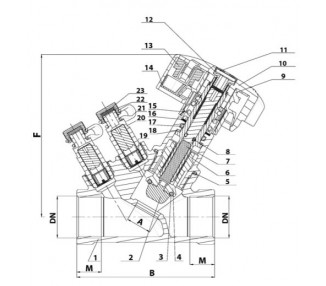 Die vorgeschlagenen Ventile haben einen schrägen Sitz, der eine gute Einstellgenauigkeit und einen geringeren Widerstand bietet als die Ventile mit geradem Sitz: Druckverluste sind gering, Durchfluss wichtiger bei gleichem DN führt. Die Montage an Rohren ist die bevorzugte Richtung, die durch einen Pfeil auf dem Gehäuse angezeigt wird. Das Strangregulierventil kann als « Absperrventil...