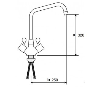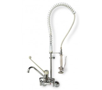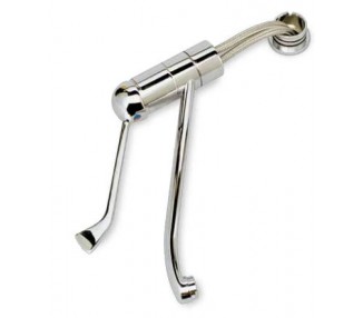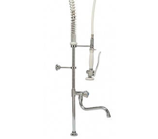 1) Feder aus verchromtem Edelstahl AISI 304. 2) Flexibler Schlauch mit PEX-Innenrohr, Edelstahlgeflecht und Kunststoffummantelung, doppelte Verklammerung und ½ "Drehmuttern. 3) Dusche mit automatischer Schließung und Dauergebrauchsring, Griff aus Echnopolymer und Verbrühungsschutz. 4) Höhenverstellbare Stützen aus verchromtem Messing. 5) Verchromt nach EN 248. 6) Installiert auf Arbeitsplatte...