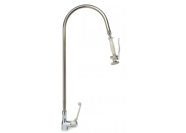 1) Feder aus verchromtem Edelstahl AISI 304. 2) Flexibler Schlauch mit PEX-Innenrohr, Edelstahlgeflecht und Kunststoffummantelung, doppelte Verklammerung und ½ "Drehmuttern. 3) Dusche mit automatischer Schließung und Dauergebrauchsring, Griff aus Echnopolymer und Verbrühungsschutz. 4) Höhenverstellbare Stützen aus verchromtem Messing. 5) Verchromt nach EN 248. 6) Installiert auf Arbeitsplatte...
