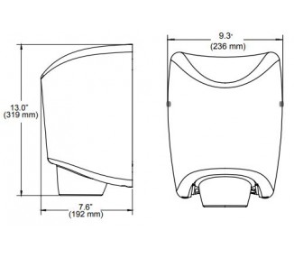 Die Gesamtabmessungen des Heißluft-Händetrockners betragen: 339 x 295 x 100 mm und das Gesamtnettogewicht beträgt 5,1 kg.