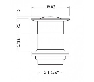 1) Made in brass according to EN 12165 2) Bronze finish. 3) Universal valve with / out overflow. 4) Standard connection G 1 ¼”. 5) Removable cap.
