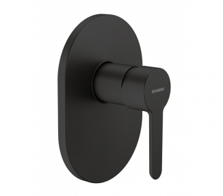- Main body –AISI 304 stainless steel, 2,5mm thickness. Matt black powder coat (RAL 9004), 115 µm thickness. Secured to wall plate with one Allen stainless steel screw. This piece consists of the main bar holding the paper roll and the round snap flange hiding and fixing the rear plate....