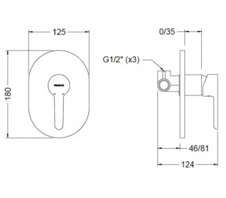 - Concealed wall plate – AISI 304 stainless steel. Secured to wall with two screws.