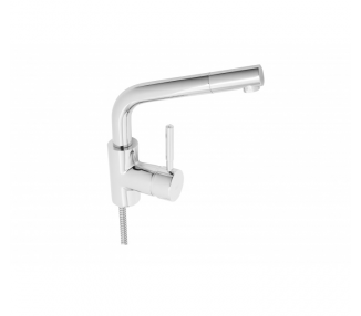1) Brass body according to UNE-EN 1982. 2) Handle made of Zamak. 3) Chrome-plated according to EN 248. 4) Noiseless ceramic cartridge Ø40. 5) Plastic aerator (antilime) M24x1 with anti-limescale system. Brass housing, chrome. 6) Equipped with 35 cm long hose connectors 10x1 H3 / 8 ", 10x1 x 15x1 15 cm long flexible hose, 2-position shower head. Hoses and fixing set made of stainless...