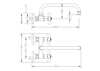 1) Body, swivelling spout and covers made in brass according to UNE-EN 1982. 2) Chromed according to EN 248. 3) Ceramic headwork G1/2". 4) Anti-lime female M22x1 plastic aerator 5) Fitted with brass fixing eccentric nuts. 6) Maximum temperature: 85 °C. 7) Max. recommended temp.: 65 °C. 8) Maximum pressure: 10 bar. 9) Minimum pressure: 0,5 bar. 10) Recommended pressure: 1 - 3 bar