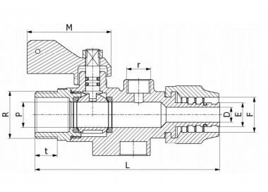 Body brass UNE-EN 12165. PTFE seats. MOP 5 class (0 to 5 bar). NBR joints. Threaded ends according to ISO 228/1 M and PE pipe connection. Temperature range -20ºC to 60ºC. Painted aluminum butterfly handle, sealable. Certified by AENOR according to standard UNE-EN 331 and UNE 60405.