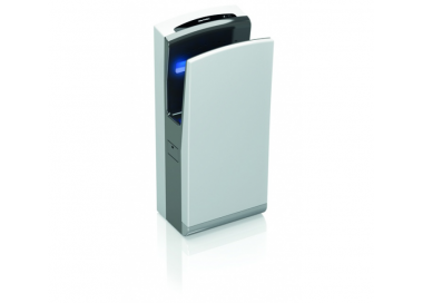 The air is blown out through a linear matrix of holes for ideal distribution of the air and drying by dragging the water off the hands. The air temperature is controlled electronically. It works with a universal brushless type motor, 220-240V, 20,000 r.p.m. The air speed is 342 km/h, which allows drying hands in approximately 10 s. The dryer has a total power rating of 1650W with a maximum consumption of 10A. The noise level at a distance of 2 metres is 75dB. The total measurements of the hot air hand dryer are 730 x 300 x 230 mm.