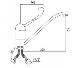 1) Tijelo i izljev izrađeni od mesinga prema EN 1982. 2) Ručka izrađena od Zamaka. 3) Kromirano prema EN 248. 4) Vodeni izlaz bešumni fi40 keramički uložak. 5) Mlazni raspršivač od plastike M24x1 s tijelom od kromiranog mesinga. 6) Opremljen sa 35 cm dugim fleksibilnim konektorima (M10x1; G 3/8 ”) i setom za pričvršćivanje potkovice od nehrđajućeg čelika. 7) Minimalna brzina protoka: 12...