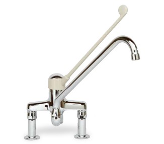 Unaprijed montiran umivaonik za pranje ruku od nehrđajućeg čelika sa "slavinom na koljeno" spreman za ugradnju Koljenom se dobiva sva dovod vode i kada je jednoručna mješalica zatvorena Svi modeli su unaprijed montirani HACCP sustavom. Izljevnici s ugrađenim reduktorom protoka 7 l/min. Uložak je vrlo lako provjeriti bez demontaže slavine.