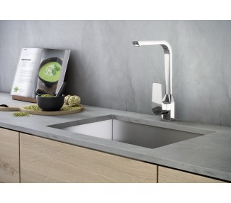 Mješalica za umivaonik s jednom polugom s visokokvalitetnim kromiranim završetkom. Lako se instalira. Opremljen keramičkim uloškom D40 visoke buke. Uključuje sve pričvršćivače.Tanka silueta pretvorit će vašu kuhinju u prostor sa svojom osobnošću.1) Tijelo od mjedi prema UNE-EN 1982.2) Ručka izrađena od dvorca.3) Kromirano prema EN 248.4) Tihi keramički uložak D40.5) Aerator sa sustavom protiv...