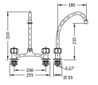 1) Tijelo izrađeno od mesinga prema UNE EN1982. 2) Drška izrađena u Zamaku. 3) Kromirano prema EN 248 4) Bešuman slobodan protok Ø35 5) Plastični perlator protiv kamenca M18x1 s poklopcem od kromiranog mesinga. 6) Opremljen 55 cm dugim fleksibilnim konektorima M10x1 F⅜” i setom za pričvršćivanje potkove od nehrđajućeg čelika. 7) Maksimalna temperatura upotrebe: 85 8) Maks. preporučena temp.:65...