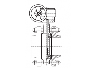 Koncentrirani disk od nehrđajućeg čelika 1.4301, 1.4401 ili nodularnog liva. Zamjenjivi labavi jastučić od EPDM / NBR zaštićen od aksijalnog pomicanja. Čvrsto vratilo od nehrđajućeg čelika 1.4021 (nije pričvršćeno) s donjom stranom montiranom u slijepu rupu. Tri klizna ležaja. Posebno dizajnirana labava brtvena podloga s poprečnim vratilom. Dodatna brtva vratila izrađena od EPDM / NBR brtvenih prstenova. Oznaka proizvoda u skladu s: EN 19; EN 1074.
