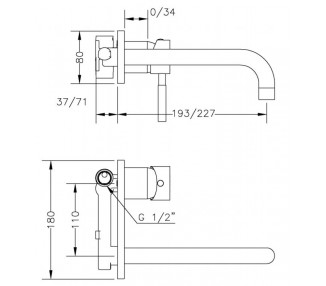 1) Telo, ročaj in podstavek iz medenine, standard UNE-EN 1982. 2) Ročaj izdelan iz zamak-a 3) Kromirana po standardu EN 248. 3) Vgrajena brezšumna keramična kartuša Ø40 s sistemom za zmanjšano porabo vode. 2 stopnji odpiranja 4) Aerator proti apnencu M24x1, kromiran. 5) Fleksibilne cevi dolžine 35 cm (M10x1; G ⅜ ”). 6) Najmanjši pretok: 12 l/min (3 bara). 7) Najvišja temperatura uporabe: 85...
