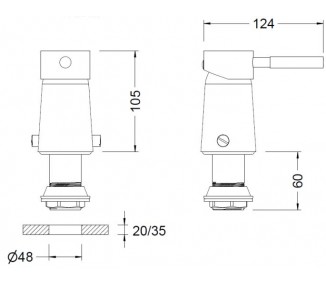 1) Telo, ročaj in podstavek iz medenine, standard UNE-EN 1982. 2) Ročica izdelana iz Zamak-a 3) Kromirana po standardu EN 248. 4) Vgrajena brezšumna keramična kartuša Ø40. 5) Diverter - odpiranje po pozicijah 6) Fleksibilne cevi l=40 cm, 10x1 F 1/2" 7) Minimalni pretok: 12 l/min (3 bar) 8) Najvišja temperatura uporabe: 85 °C. 9) Najvišja priporočena temperatura: 65 °C. 10) Najvišji tlak...