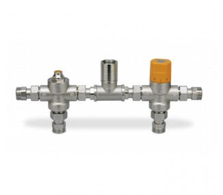1. Vnaprej sestavljen termostatski komplet. 2. Olajša povezavo s solarnega panela na kotel in poenostavi namestitev. 3. Termostatski mešalni ventil z zaščito pred vodnim kamenjem. 4. Preklopni termostatski ventil s prednastavljeno temperaturo pri 40ºC. 5. Priključki vključeni. 6. Nepovratni ventil s filtrom iz nerjavnega jekla. 7. Najvišja temperatura dovoda vode 110ºC.