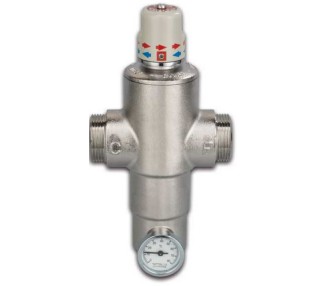 Uporaba: Za naprave s sončnimi kolektorji, pečmi in toplotnimi črpalkami. Za distribucijske naprave tople vode za sanitarne namene, prhe, umivalnike itd. Za manjše naprave talnega ogrevanja. 1. Mešalna naprava z nastavitvijo temperature in zaustavitvijo dovoda vode po standardu EN 1111. 2. Ohranja konstantno temperaturo mešane vode v vseh vodovodnih sistemih. 3. Izvlečna kartuša in...