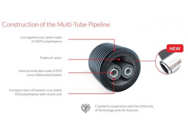 Predizolirane cevi so izdelane iz fleksibilne zaščitne zunanje cevi, ovoja, katera varuje izolacijo ter prprečuje vhod vode ter vhod in iztop zraka. Zaradi svoje fleksibilnosti je rokovanje z njo enostavno. Za polaganje ne potrebujete težke gradbene mahanizacije, delo pa je veliko hitrejše kot polaganje standardnih izoliranih cevi. Notranjost je napolnjena s posebno izlacijo, ki obdaja PEX cev po kateri se prtaka medij.