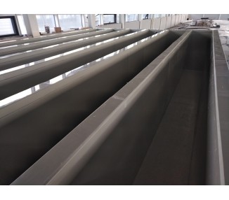 Kadi, posode: Oblike pravokotne, kvadratne okrogle posode Dno: ravno, poševno, konično ali po želji naročnika Dimenzije:po želji naročnika Izvedba: kvadratne z jeklenimi ojačitvami, inox ojačitvami, ojačitve iz termoplastov Uporaba: galvanske linije, ribogojnice, obdelava odpadnih vod, nevtralizacijski bazeni Material: PP, PE, PVC, po želji naročnika