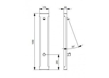 SESTAVA - Kromirana medeninasta pipa - Kromirana tuš kabina, odporna proti vandalizmu - Stolp iz nerjavečega jekla AISI 316 DELOVNE KARAKTERISTIKE Pretok: 8 l/min (z regulatorjem pretoka) Delovni tlak: Min 1 – max 6 bar Priporočen tlak: 2 – 4 bar Vhodna temperatura vode: 5 – 65 °C Čas pretoka: 15 sek. pri 3 barih (toleranca, kot je navedeno v EN 816: 15 ± 5 s) DELOVNE KARAKTERISTIKE UMIVANJE...