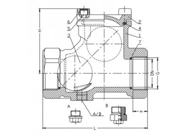 Ventili za gravitacijske sisteme. Ventil ima ohišje iz litega železa, v katerem je ohlapna krogla (zapiralo). Komora ohišja je z vrha zaprta s pokrovom iz litega železa, ki je zatesnjen z o-tesnilom in privit na ohišje s šestrobimi vijaki, ki so poravnani s sedeži pokrova ventilov. Kroglica v ventilu pred vgradnjo se nahaja v najnižjem delu telesa ventila in sedi v sedežu ventila. V delovnih pogojih se krogla drži v zgornjem položaju znotraj žepa pokrova ventila z dinamično silo toka tekočine ali v zaprtem položaju, kjer zatesni sedež ventila pod protitlakom. Vse notranje in zunanje litoželezne površine ventila so prašno lakirane z epoksidno smolo. Kroglični ventili za gravitacijske sisteme imajo gostoto krogle večjo od gostote vode.