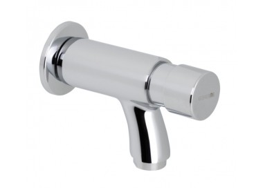 Časovna pipa za umivalnik, ki se namesti na steno nad pultom. Vgrajen vložek s samodejnim zapiranjem s časovnim intervalom od 7 do 10 sekund. Opremljen s plastičnim varčevalcem proti vodnemu kamnu 6 l/min prezračevalnik in plastičnim filtrom proti delcem.