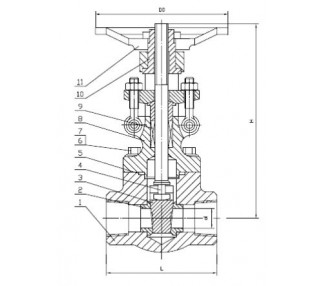 1. Zaporni ventil 150 razreda. 2. Oblikovanje v skladu z EN ISO 15761 (API 602). 3. Izdelano iz kovanega jekla ASTM A105N. 4. Sedež iz nerjavečega jekla, utrjen s stelitom. 5. Zagozdni disk iz nerjavečega jekla. 6. Obroba št. 8 (enakovredno XU). 7. Konci s prirobnico v skladu z ANSI B 16.5. 8. Pokrov motorja z vijaki. 9. Maks. Delovni tlak 19 barov. 10. Delovna temperatura: -29ºC do 420ºC.