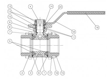 Krogelni ventil 3-delni, nerjavno jeklo CF8M (316) plinski navoj ISO 7-1 (EN 10226-1). Sedeži in tesnila: PTFE + 15% GF za os: viton PN 63. Temp. -25 °C + 180 °C. Neposredno sestavljanje ISO 5211 s sistemom zaklepanja.
