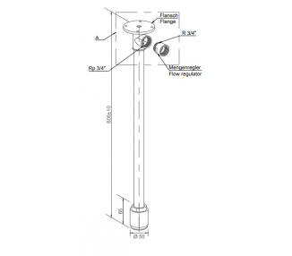 - stenska prirobnica s 4 pritrdilnimi luknjami iz nerjavečega jekla, kemično odporna z zelenim prahom, vključno s hitrim priključkom X6 z vgrajeno samodejno regulacijo pretoka 50 l/min. za vzorec pršenja po v določenem delovnem območju od 1,5 do 3 barov dinamičnega tlaka vode, dovod vode ¾" ženski