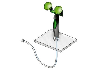 - visoko zmogljivi razpršilni glavi za obsežno disperzijo vode, pod kotom 45 °, s plastično brizgalno ploščo, preprečuje nabiranje vodnega kamna, z gumijastimi robovi in zatesnjenimi pokrovčki proti prahu