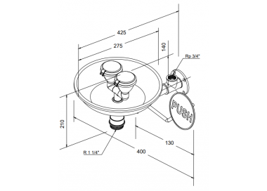 ClassicLine varnostni tuš za oči s posodo iz nerjavečega jekla, stenska namestitev.
