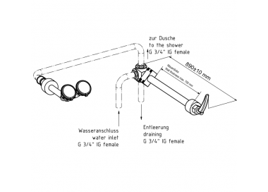 - 3-smerni kroglični ventil ¾" iz medenine, ki samodejno odvaja prho navzdol, ko ni v uporabi, dovod vode ¾" ženski