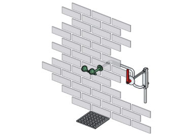 - stenska prirobnica s 4 pritrdilnimi luknjami iz nerjavečega jekla, kemično odporna prevlek, dovod vode 3/4", od zadaj skozi steno