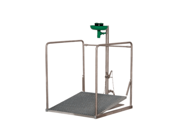 PremiumLine postaja z varnostnim tušem za oči z umivalnikom, samoodtočna, z varnostno ograjo.