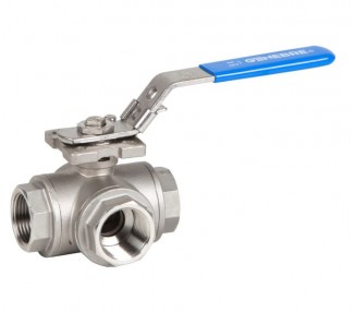 1. 3-potni krogelni ventil z zmanjšano odprtino. 2. Konfiguracija žoge ”L”. 3. Navojni konci v skladu z ISO 7-1 (EN 10226-1). 4. Iz nerjavečega jekla 1.4408 (CF8M). 5. Štiri kroglični sedeži PTFE + 15 % G.F. 6. Tesnilo stebla PTFE. 7. FKM (Viton) tesnilni obroč. 8. Antistatična naprava (krogla – steblo – telo). 9. Sistem zaklepanja. 10. Neposredna montaža aktuatorja v skladu z ISO 5211. 11....